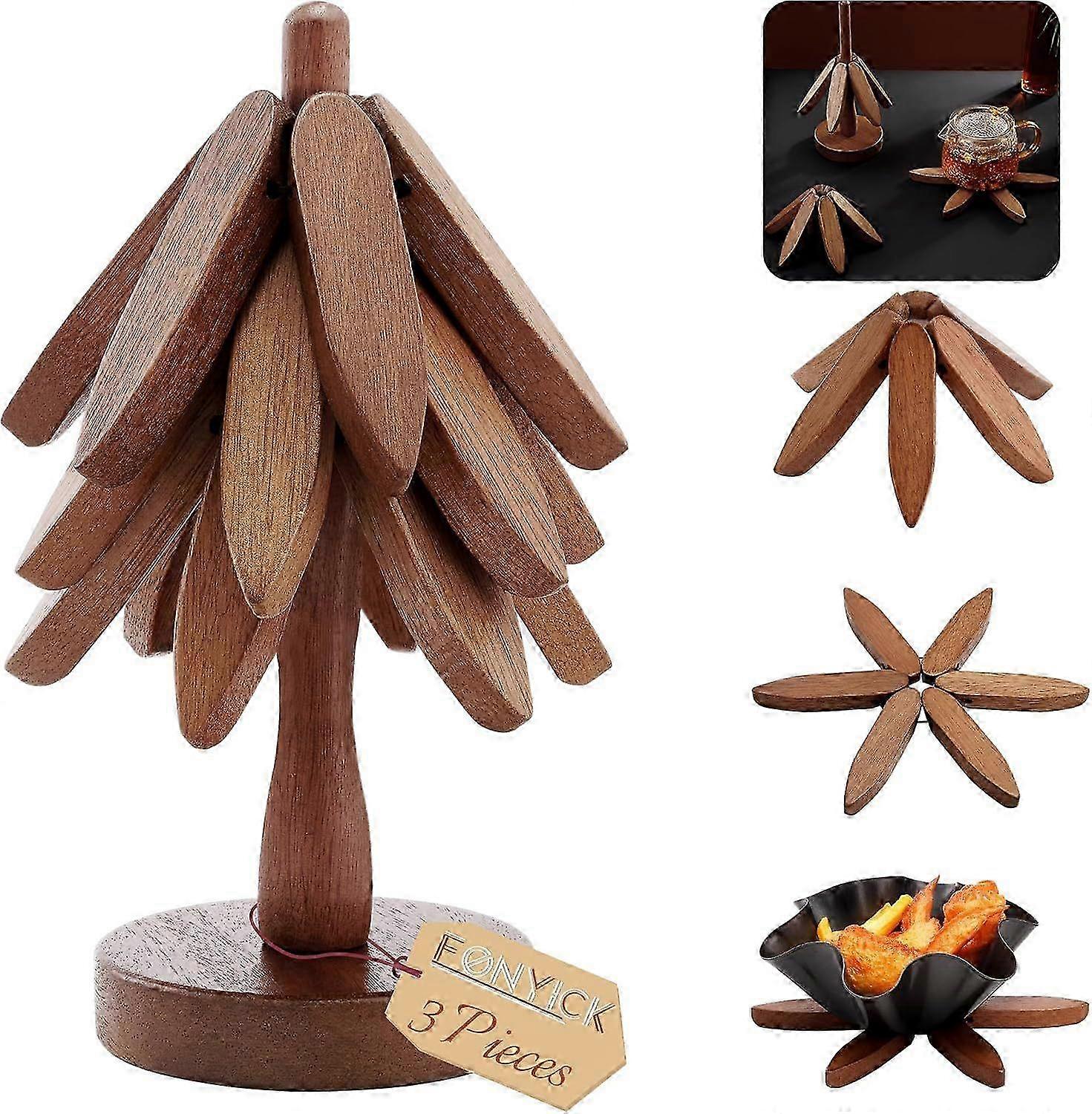 Christmas Tree Wooden Coasters Set of 3, Wooden Trivet for Hot Dishes