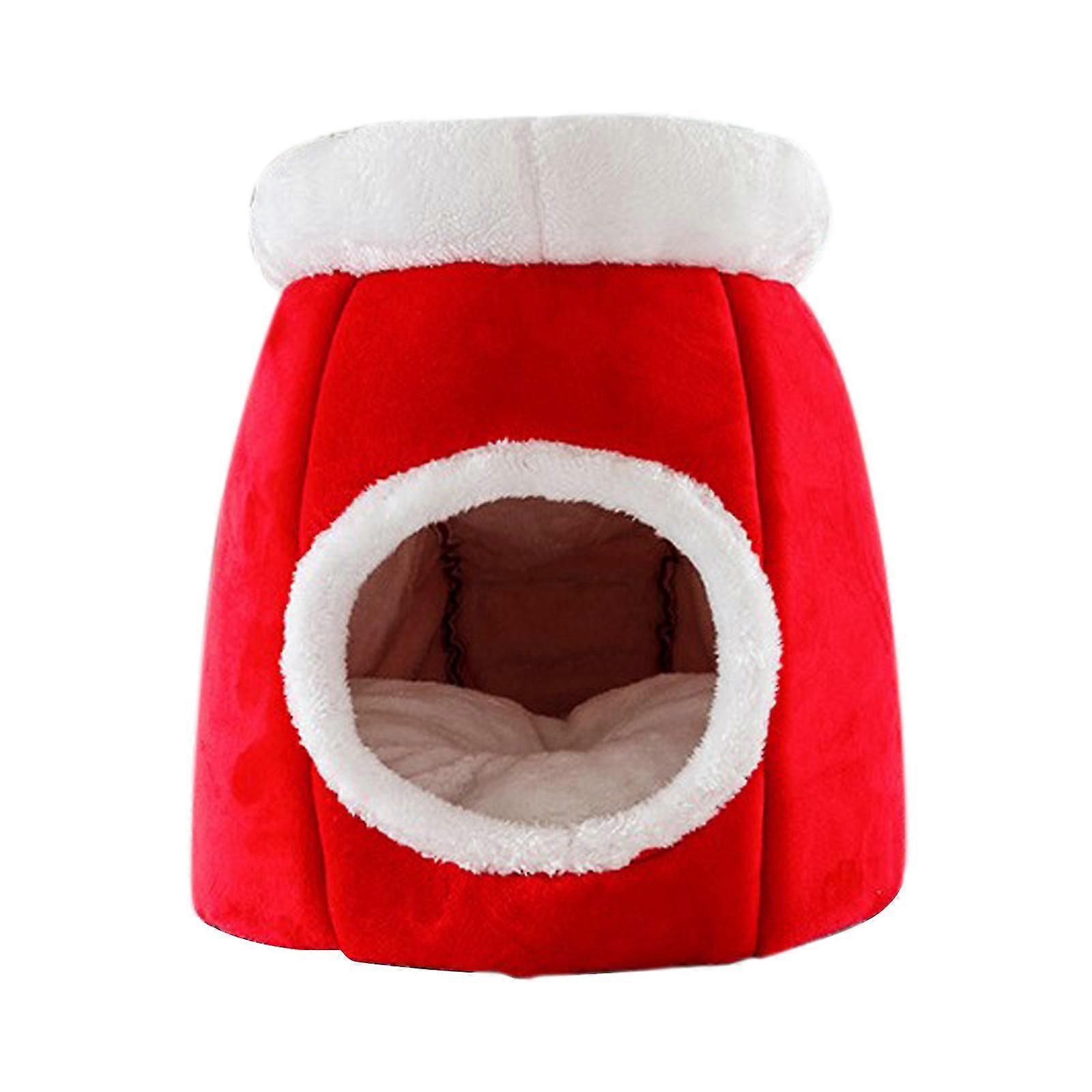 Christmas Tree Cat House Pet Bed Cozy And Soft Crystal Velvet Nest Indoor, Safe For Small Pets, Ideal For Cold Weather,M,Red