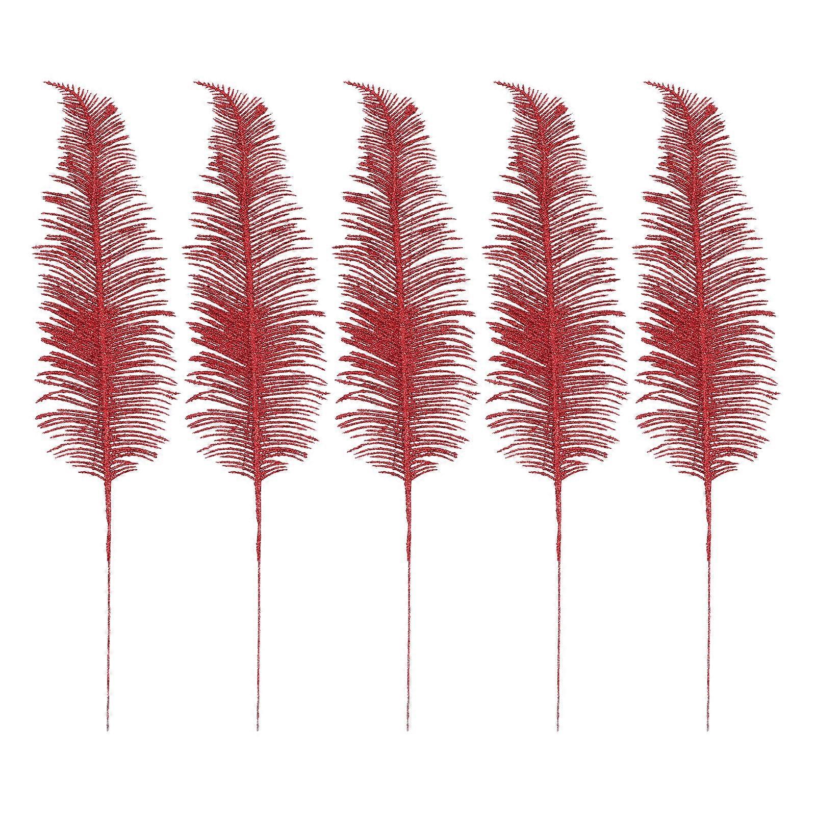 Red Artificial Glitter Leaves Decoration for Xmas Tree 5Pcs Plastic
