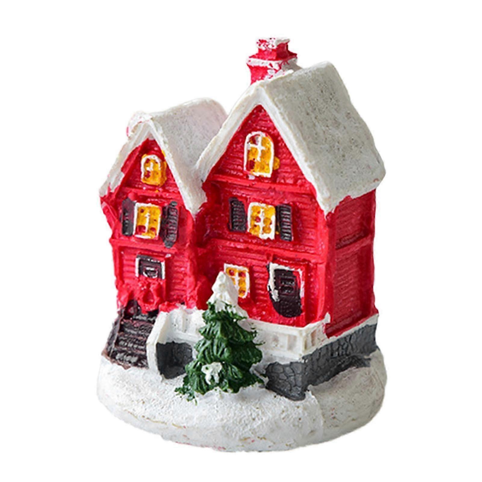 Christmas Decoration Winter Village House Snowman Tree Ornament Miniature Doll House Resin Figurines for Home Office Room Decor