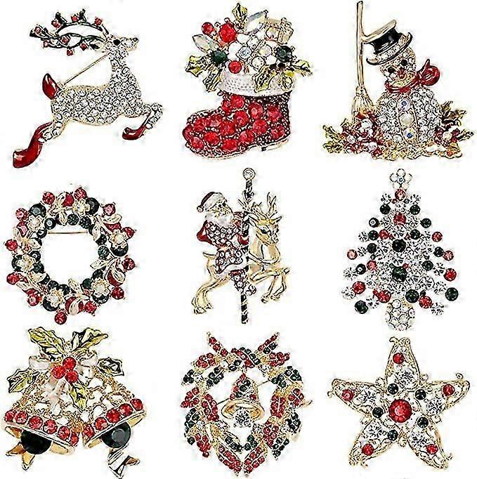 9pcs Christmas Brooch for Christmas Decoration Ornaments Gifts