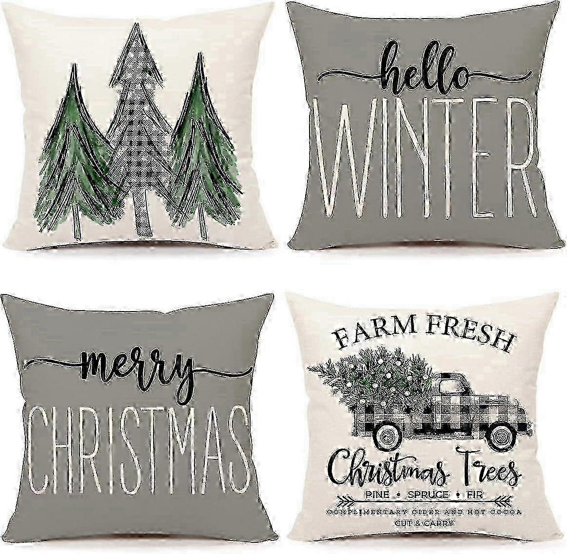 Christmas Decorations Pillow Covers 18x18 Set of 4 Pink Stripes Santa Snowman Snowflake Merry Christmas Tree Let It Snow