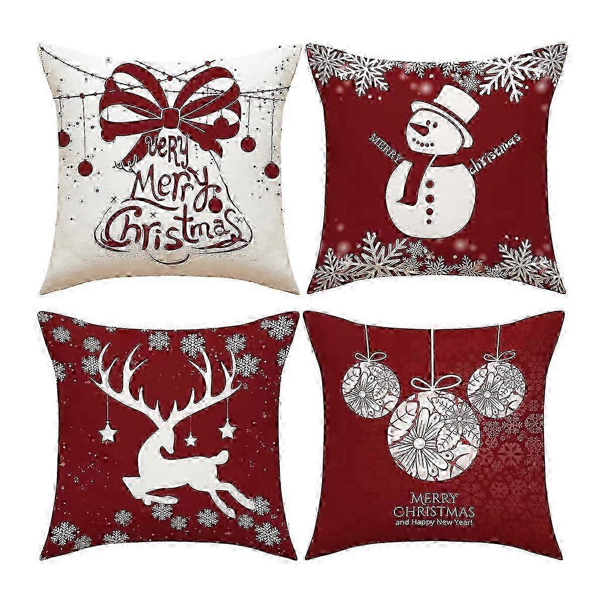 4-piece cotton and linen square cushion covers for Christmas decoration 2025