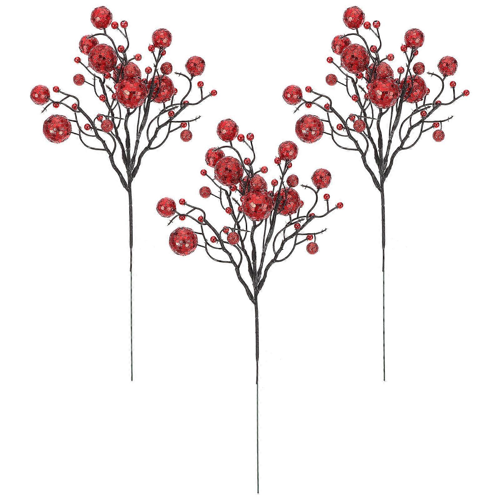 Red Artificial Berries for Christmas Decoration PVC 3pcs Ornament Ideal for Wreaths and Centerpieces