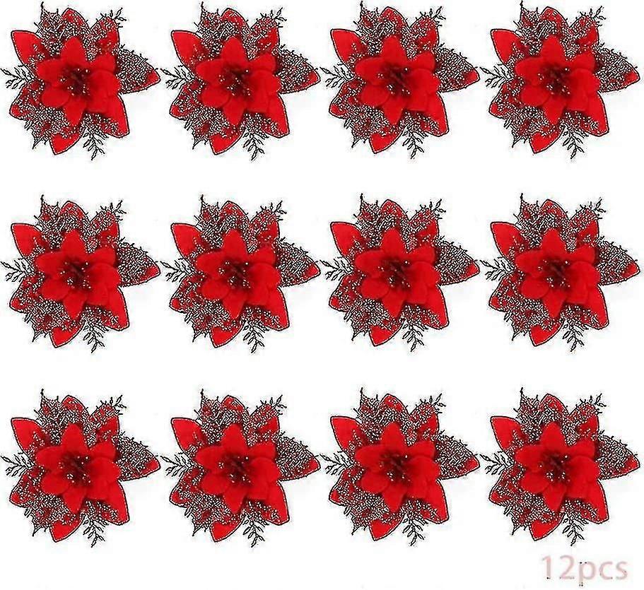 Christmas Decoration 12pcs Christmas Simulation Flower, Poinsettia Christmas Flower, Christmas Flowe