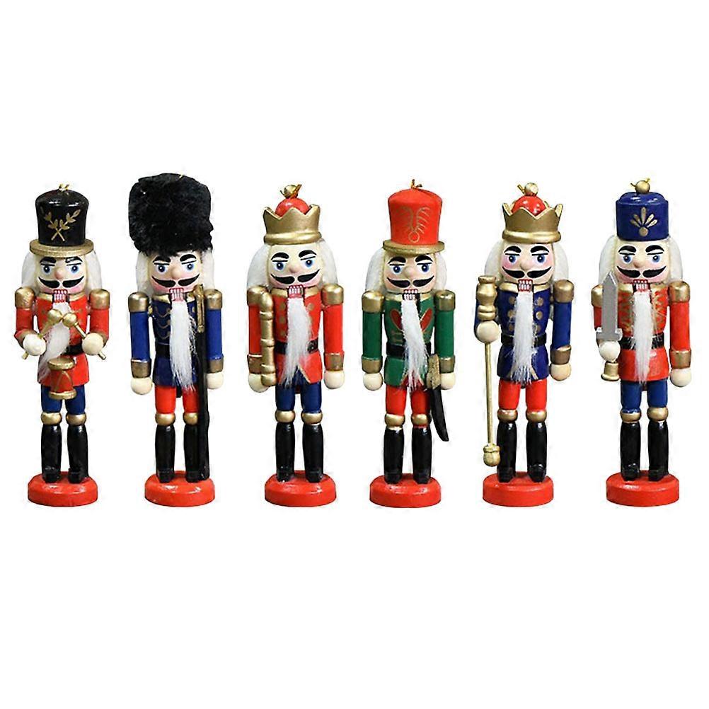 6pcs Small Nutcracker Figurines for Christmas Desktop Decor Holiday Craft Ornament Set with Red, Blue, and Green Soldier Designs