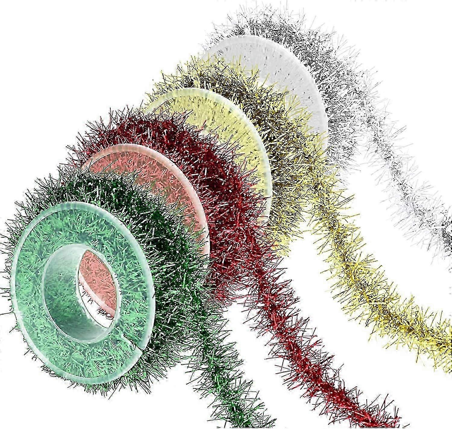 Christmas Tinsel Garland,4 Color Mini Tinsel Garland for Christmas Tree Decorations Tinsel, Xmas Tinsel Ribbon Hanging Decoration Garland DIY for Chri