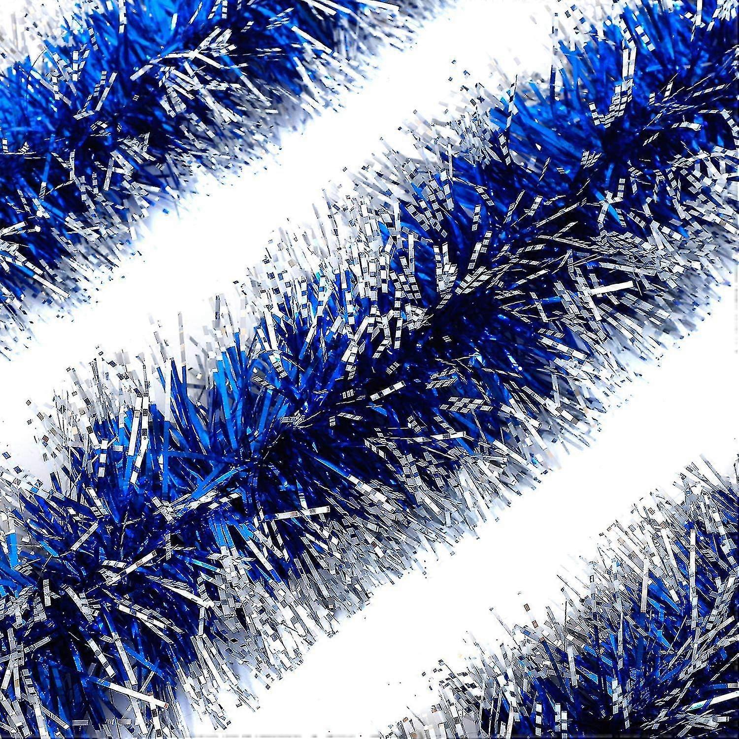Christmas Tinsel Garland - 25ft Shiny Sparkly Ceiling Hanging Decorations (blue Silver Edge)