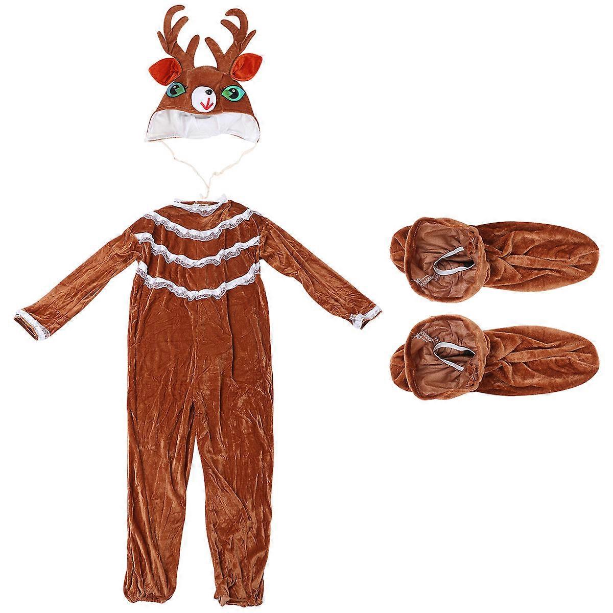Christmas Theme Elk Performance Costume For Adults Party Costume Khaki Material 1 Set