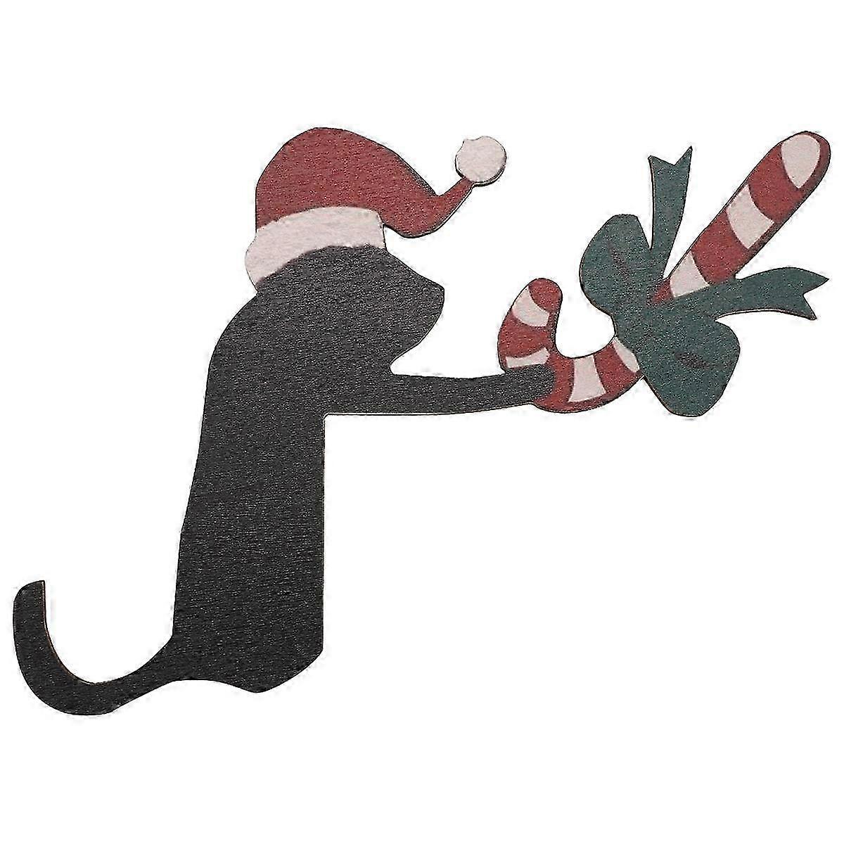 Christmas Door Corner Sign Wooden Cat Door Topper Decor, Wood Door Frame Ornament Cat Statue Art Figurine for Wall