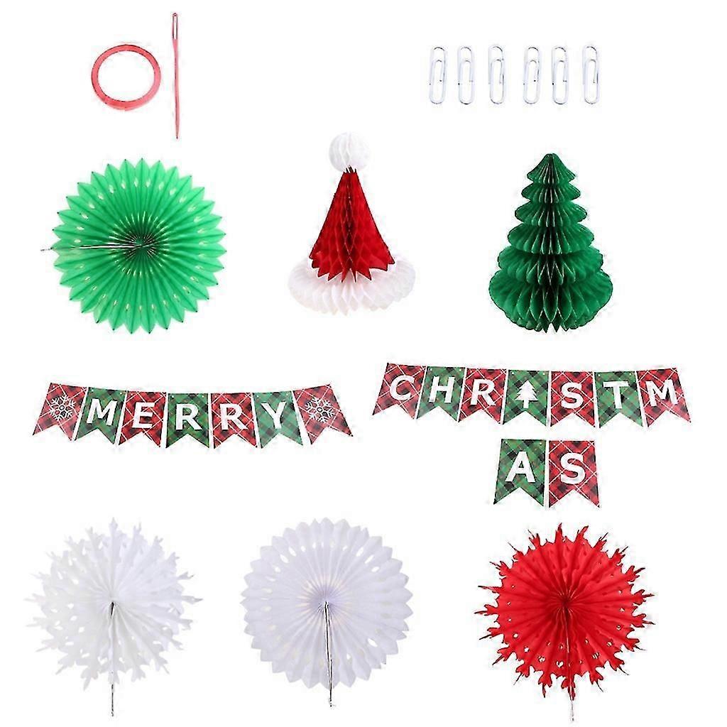 Christmas Door Hanging Paper Fan Banner Xmas Tree Honeycomb Door Wall Decor