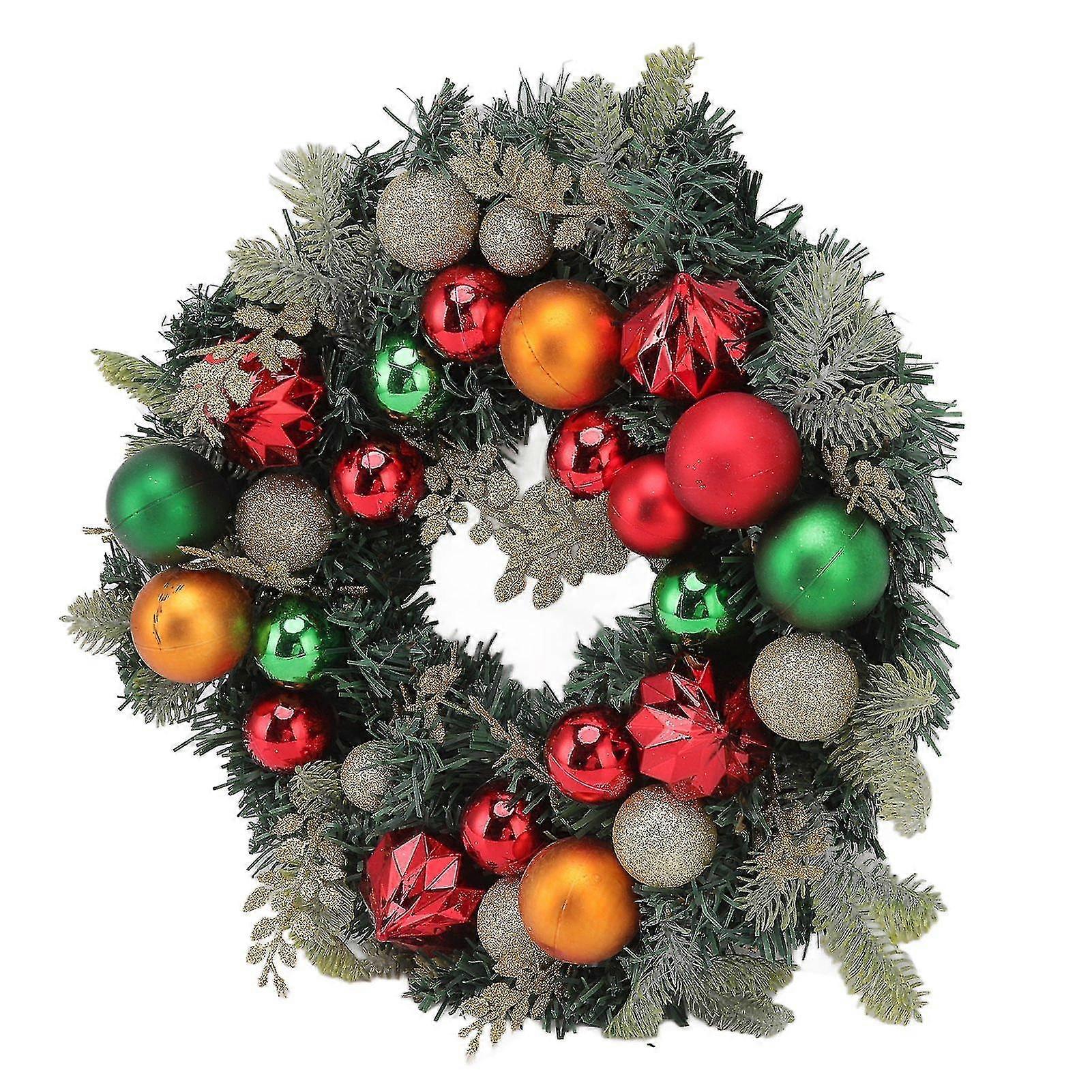 Item Type: Material: Plastic, wire Weight: Approx. 480g/16.93oz 1Add Festival Spirit: The Christmas wreath adds more color to the house, making the winter no longer dreary and the holiday ambient more intense. 2Colorful Decorative Balls: There are many colorful decorative balls on the wreath, with bright colors. These balls are not easy to fade after electroplating. 3Exquisite Craftsmanship: The Christmas front door wreath is hand made with exquisite details and craftsmanship, packaged carefully so that the decorative balls will not fall off during transportation, can be recycled for multiple seasons. 4Nice Decor: Beautiful wreath bring new life to your home, can be used indoors or outdoors, hang wreath on the front door, fireplace, living room, cabinets, wall, window, shelves etc. 5Wide Application: This wreath is suitable as front door outdoor wreath, wedding wreath, welcome wreath, farmhouse wreath, wall decoration and more.1 x
