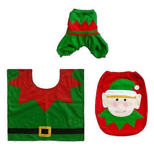 Christmas Toilet Bath Mat Set Non-slip Floor Printed Carpet Merry Bathroom Accessories Home Decoration Gift