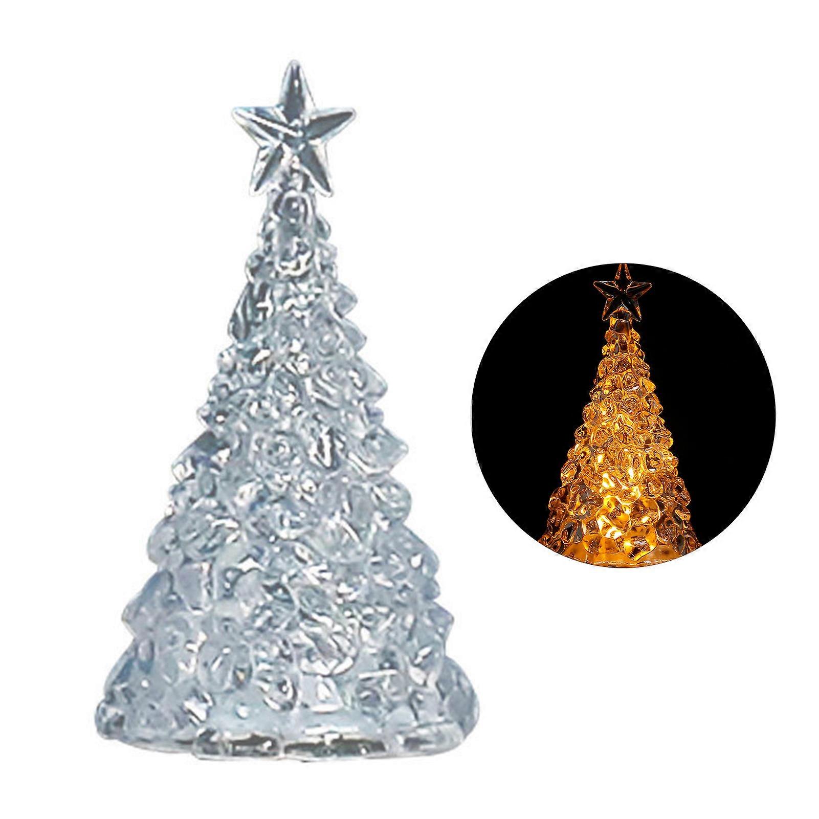 Christmas Night Light Acrylic Xmas Tree LED Decoration Glitter Tabletop Figurine Mini Holiday Colorful Light for Home Bedroom Decor