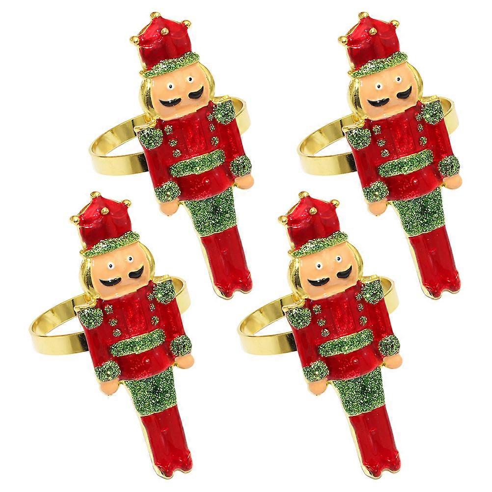Christmas Napkin Rings Nutcracker Shape Table Decoration Cloth Napkins Red and Green 4Pcs