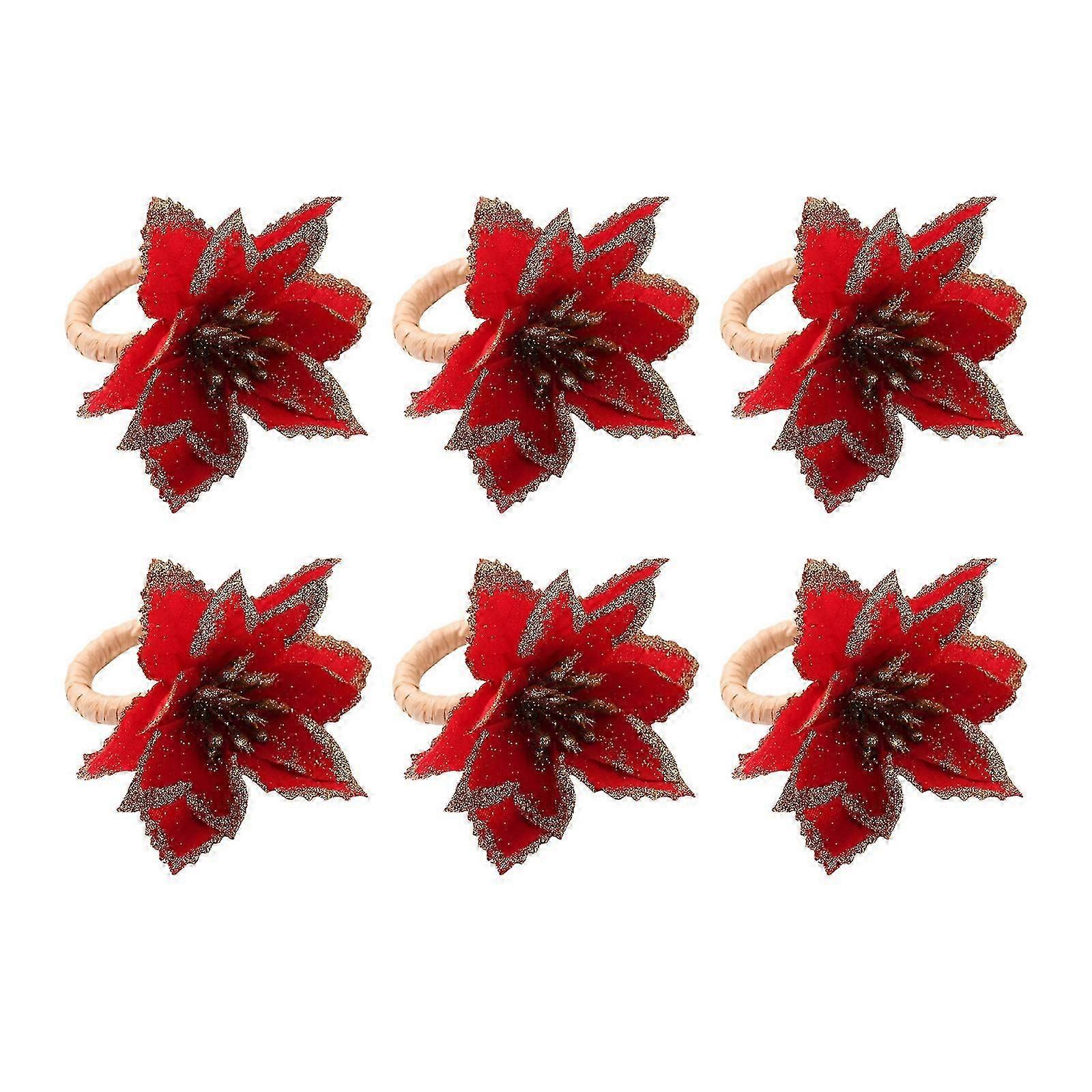 Christmas Napkin Rings Set of 6 Artificial Flower Table Decor for Parties