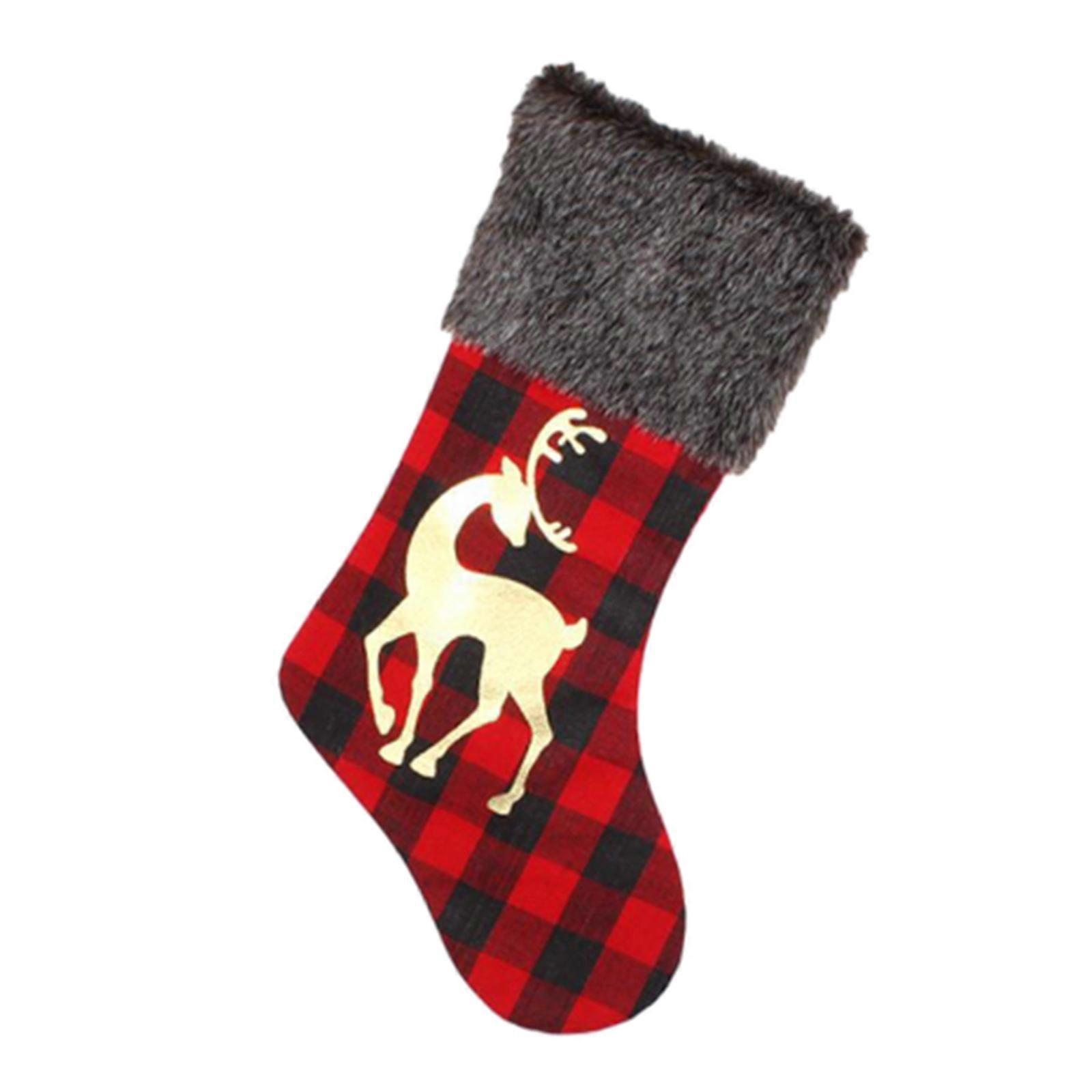 ["brand new and high quality\n\nFeatures:\nClassic red and black buffalo plaids, faux fur plush cuffs patchwork.\nLarge enough to hold many Christmas gifts and candies and various other fillers inside.\nClassic Christmas design, shiny metallic golden snowman/tree/santa/elk patterns.\nLovely and stylish, giving enough soft for touch to you and can keep items inside well.\nThey will be perfect for decorating your home and become part of your holiday tradition.\nComes with a sturdy string, can hanging on mantle, fireplace, wall or bedside, and so on.\nPerfect decor accessories for Christmas New Year party, home decor, office, hotel, party use.\n\nSpecification:\nMaterial: Cloth\nOptional Color: 1, 2, 3, 4\nSize: app. 29x37x20cm/11.41x4.56x7.87in\nQuantity: 1 pc\n\nNote:\nTransition: 1cm=10mm=0.39inch\nNo retail package.\nPlease allow 1-3mm error due to manual measurement. pls make sure you do not mind before you bid.\nDue to the difference between different monitors, the picture may not reflect the actual color of the item. Thank you!\n\nPackage includes:\n1 x Hanging Stocking(other accessories demo in the picture is not included.)"]