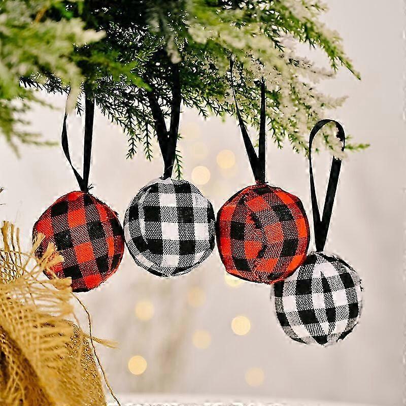 4 pieces of Christmas buffalo plaid fabric ball lattice ornaments Christmas tree ornaments pine cones and green leaf balls decoration Christmas party