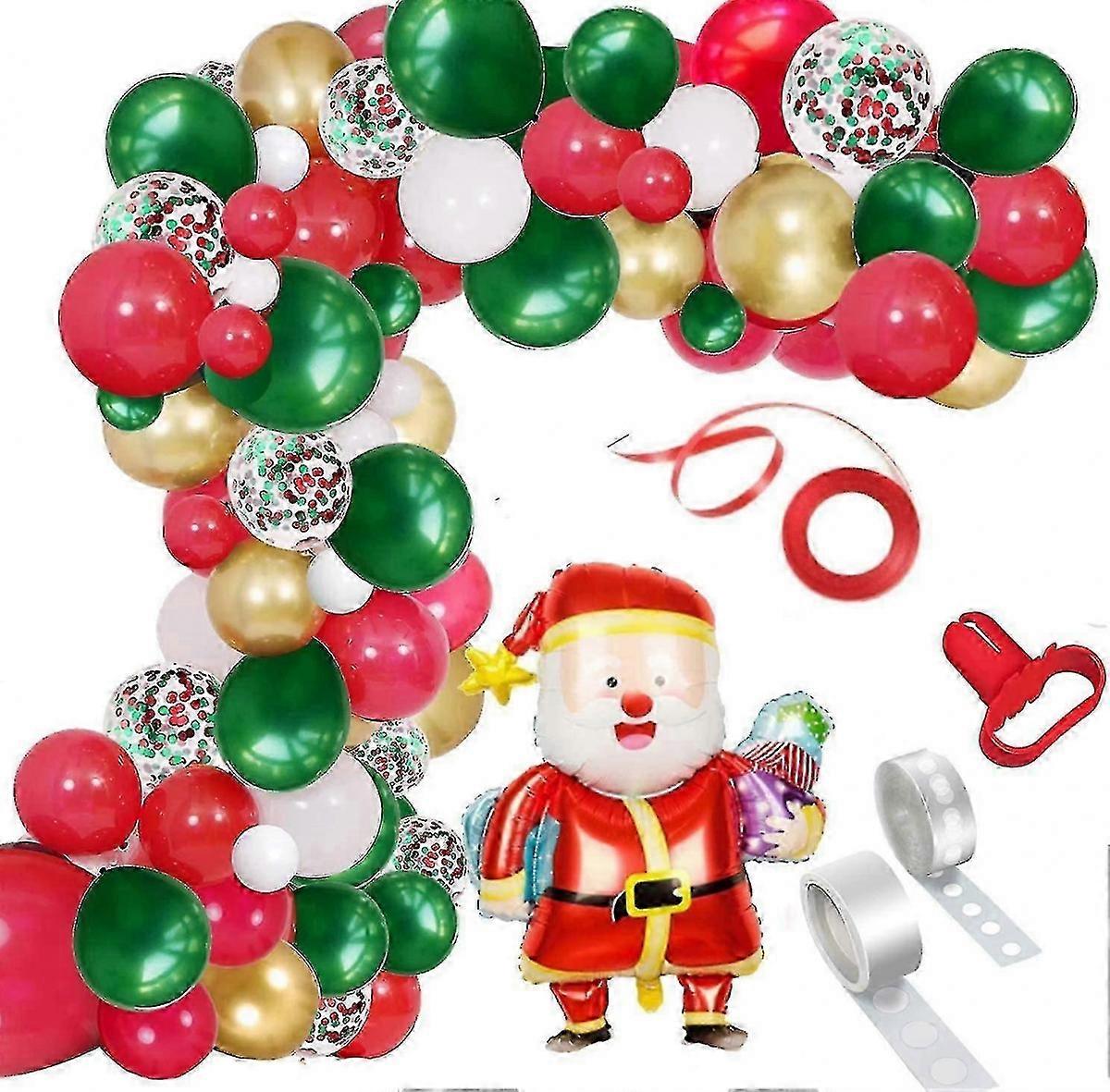 Christmas Balloon Arch Garland Kit, 115 Pieces Green Red White Gold Confetti Balloons With Santa Claus Mylar Balloon