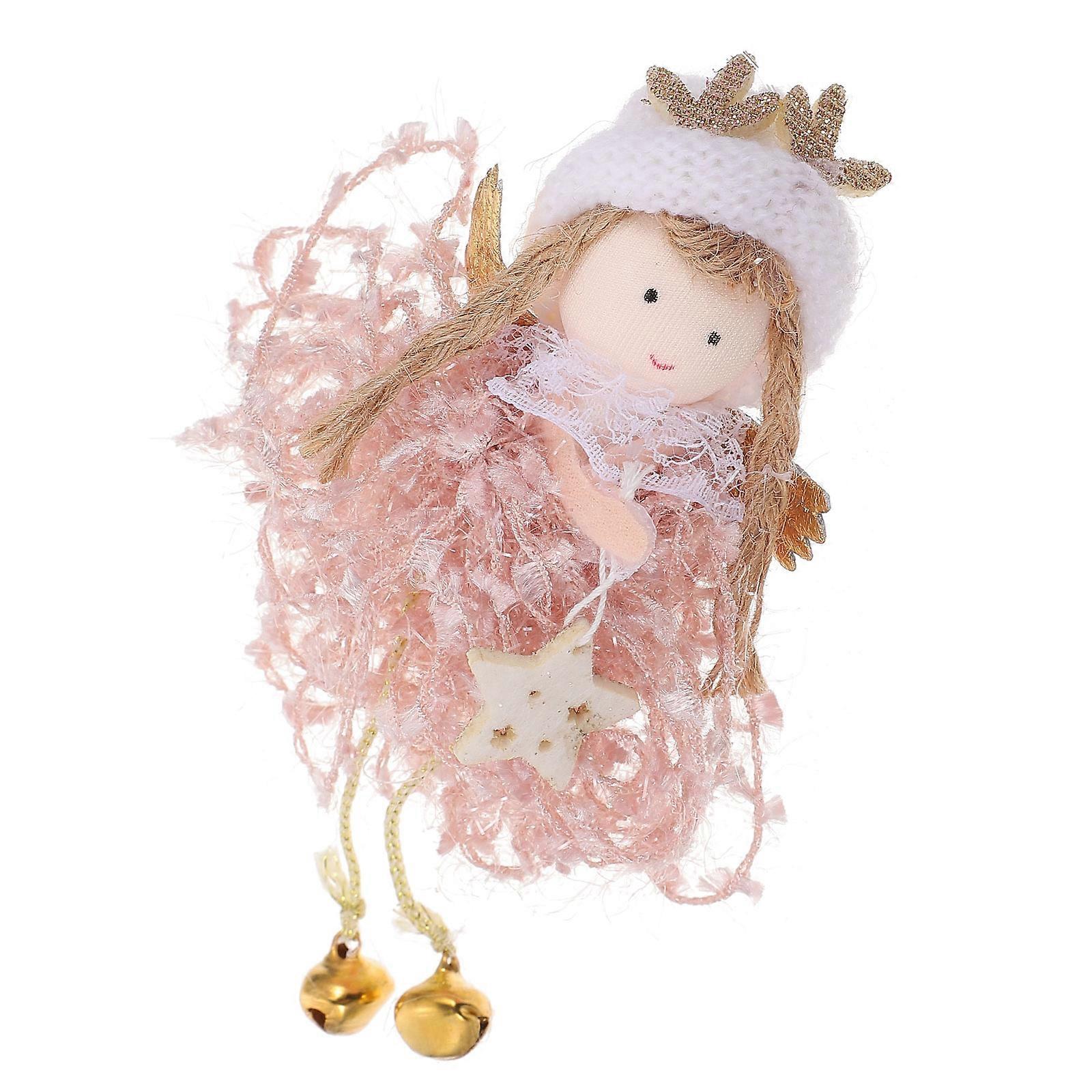 Angel Pendant Cloth Doll For Christmas Party Occasion In Pink Color With Material Design 1Pc