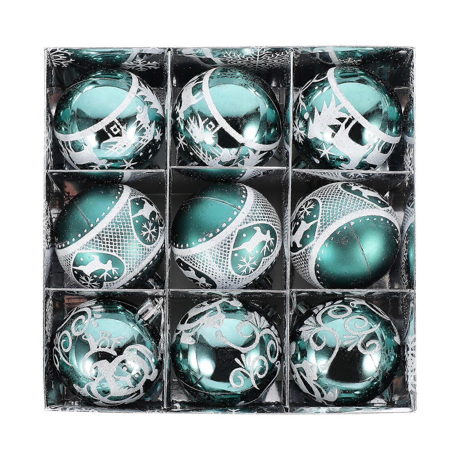 Round Christmas Ball Set For Christmas Party Decoration 9Pcs Green Plastic 2.36x2.36x2.36 Inch Hanging