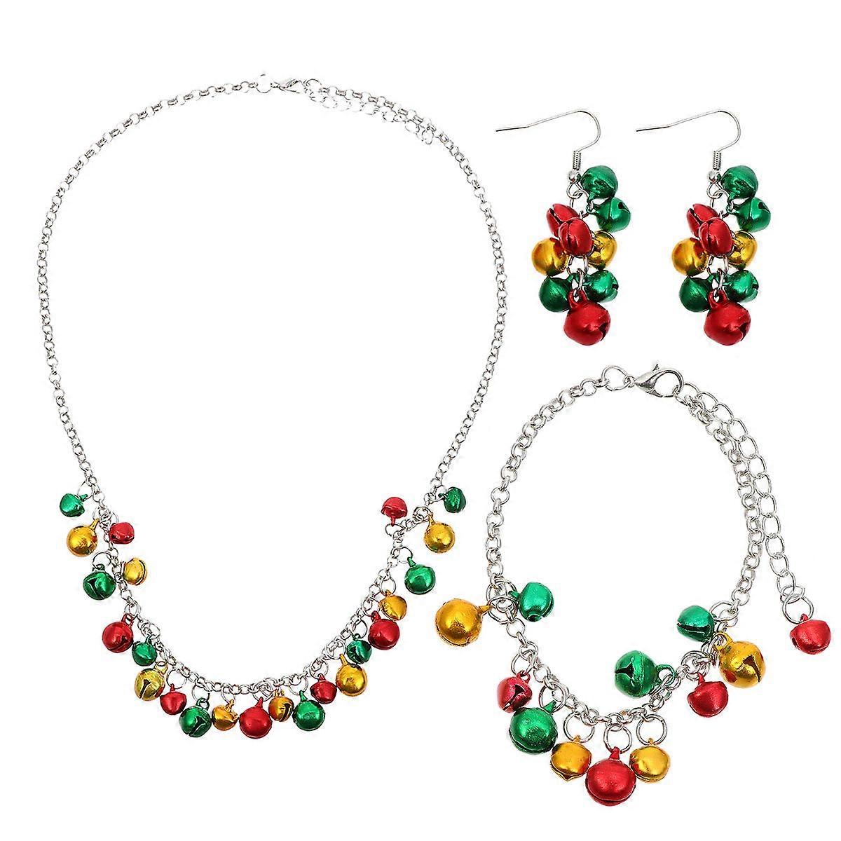 Colorful Bell Necklace Bracelet Earrings Set Made of Aluminium for Wearing during Christmas Parties