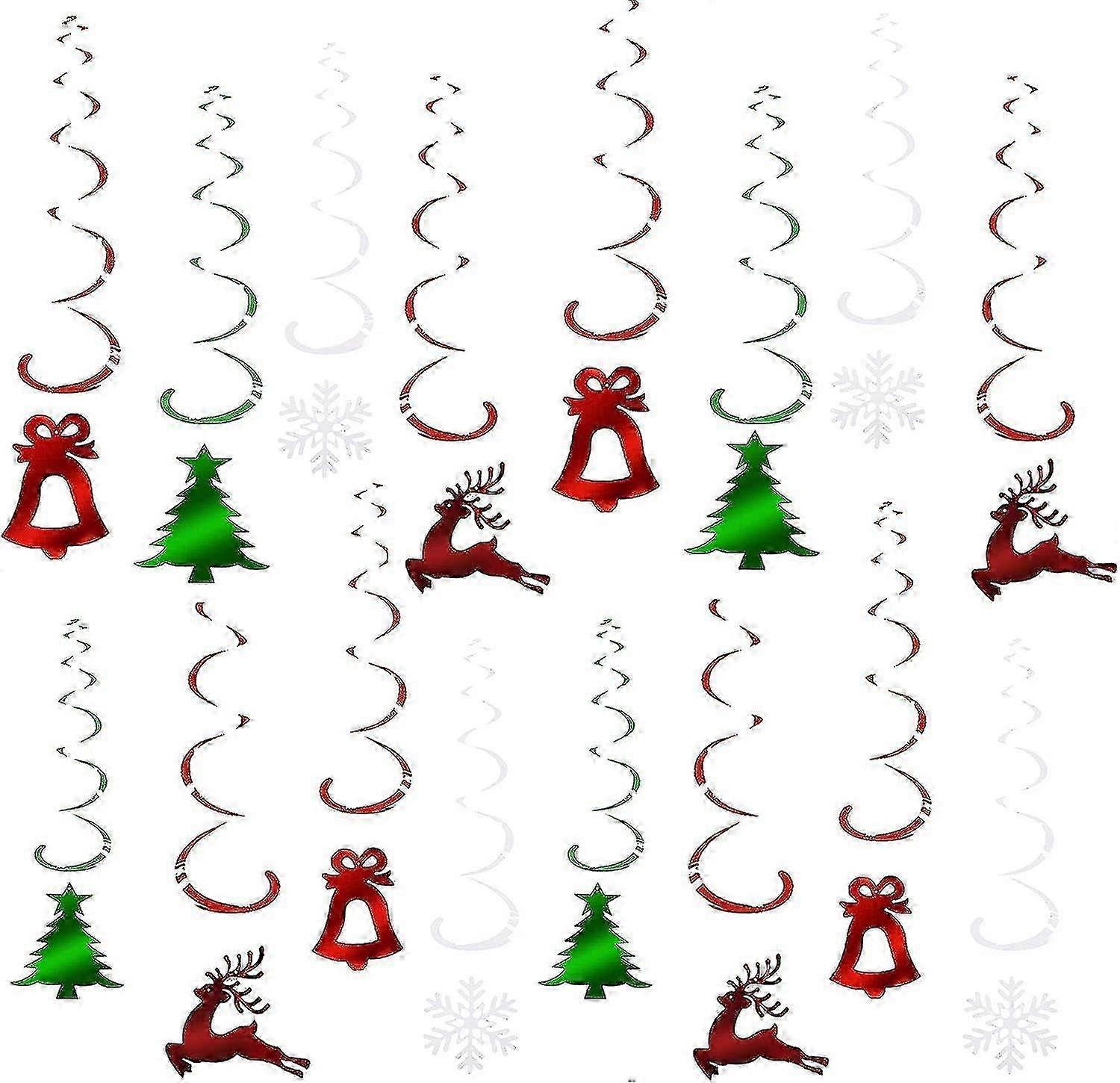 Christmas Hanging Swirl Decorations, Tree Bell Reindeer Snowflake Foil Ceiling Decorations, Winter Wonderland Holiday Party Supplies