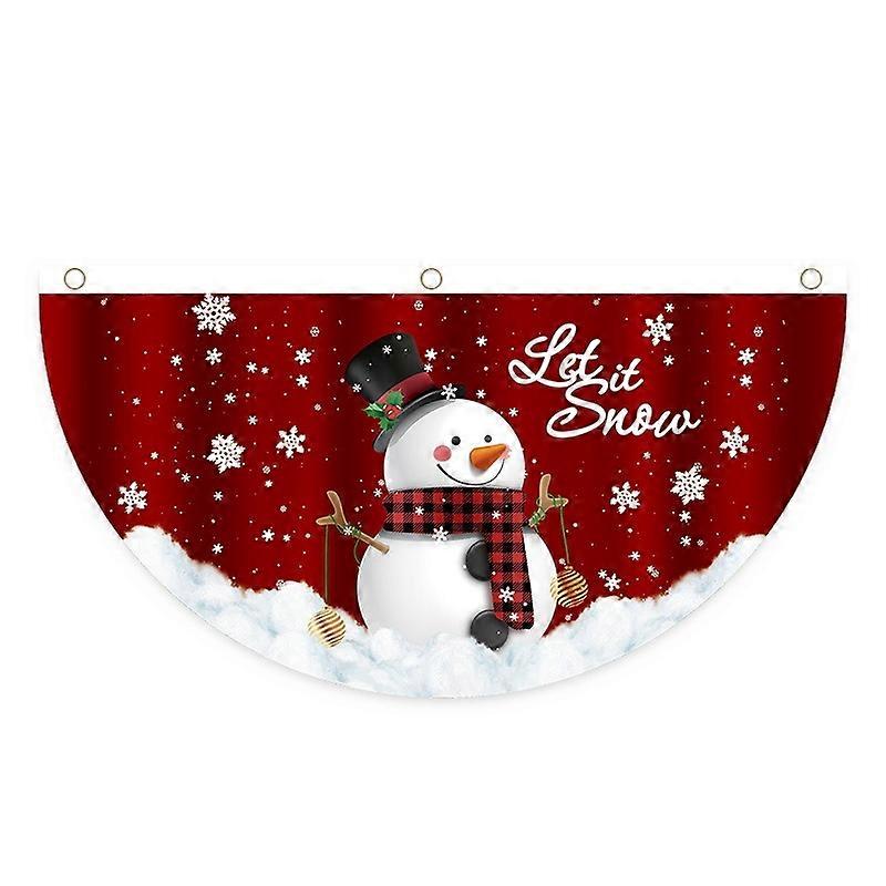 Christmas Half Fan Flag Banner 33.41 x 17.68 Inch xmas Snowman welcome flag Christmas Party Decoration for Garden Patio Outdoor Indoor