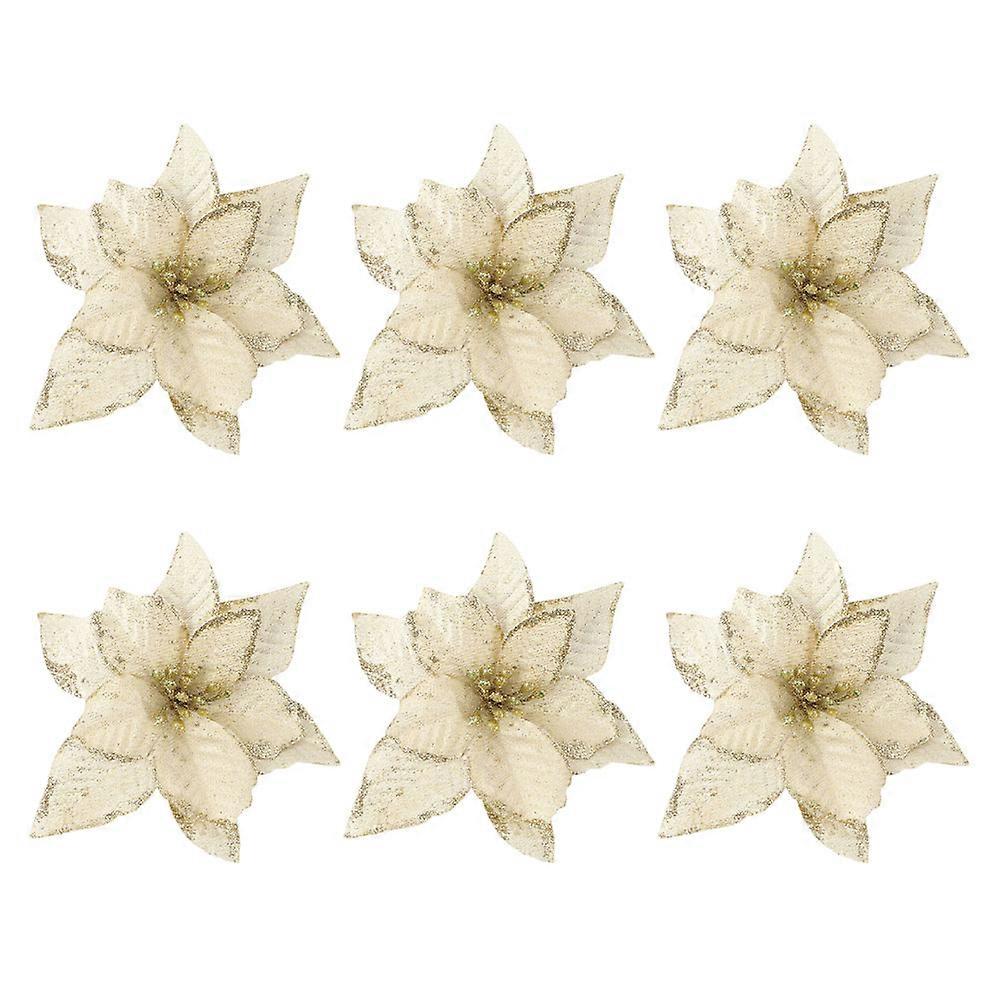 Christmas Flower Decor Simulation Flowers for Decoration 6Pcs Golden PVC Artificial