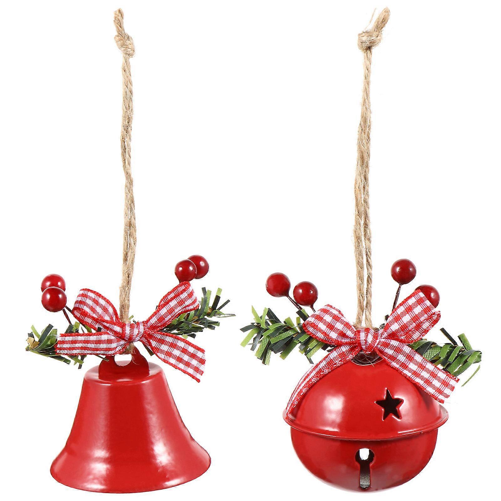 Christmas Bell Iron Bells Adorable Hanging Ornament for Home Decor Round Bell Red 16.00X6.00X6.00cm Jingle Sound 2Pcs