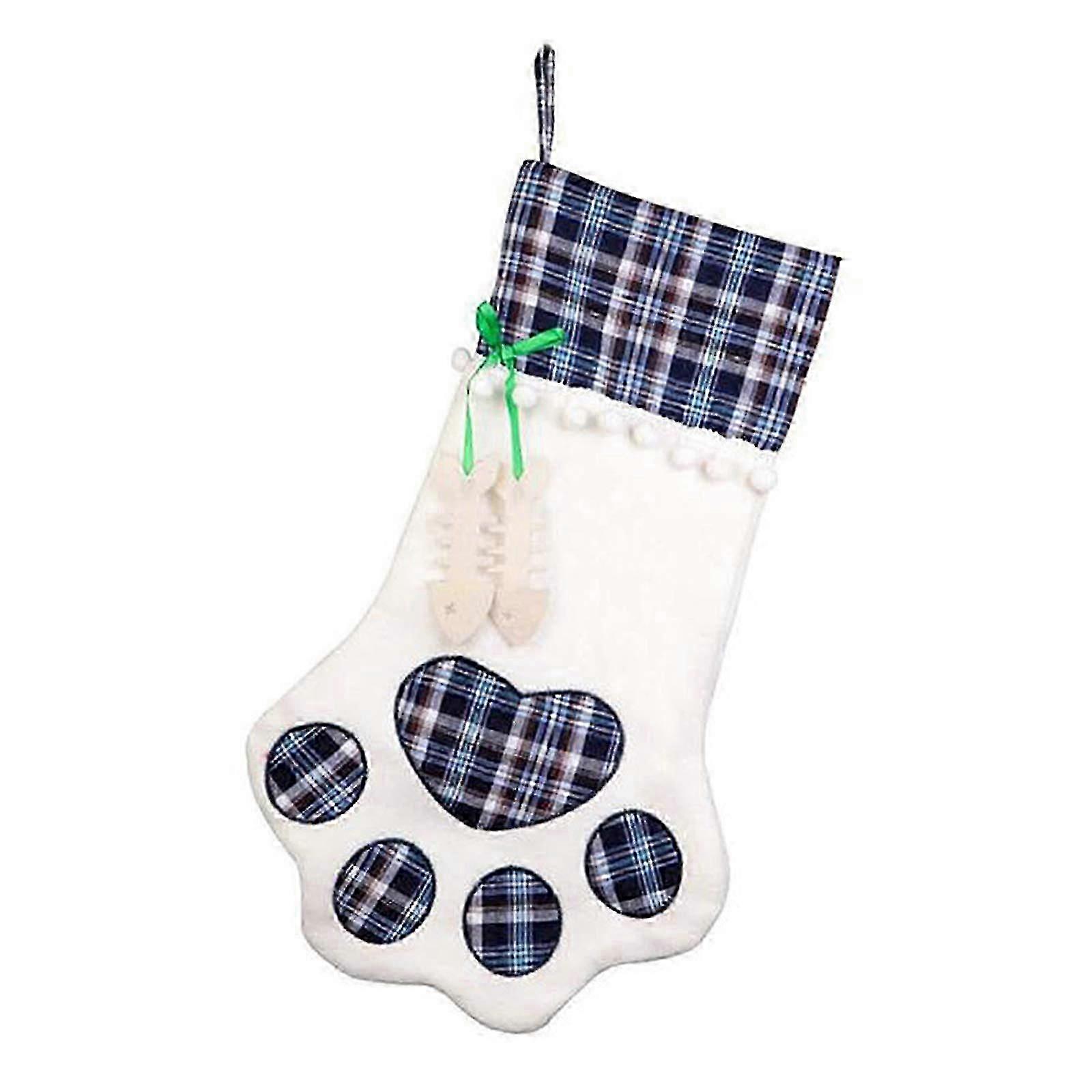 Christmas Pet Stocking Hanging Christmas Stocking with Large Paw for Christmas Decorations (Blue)