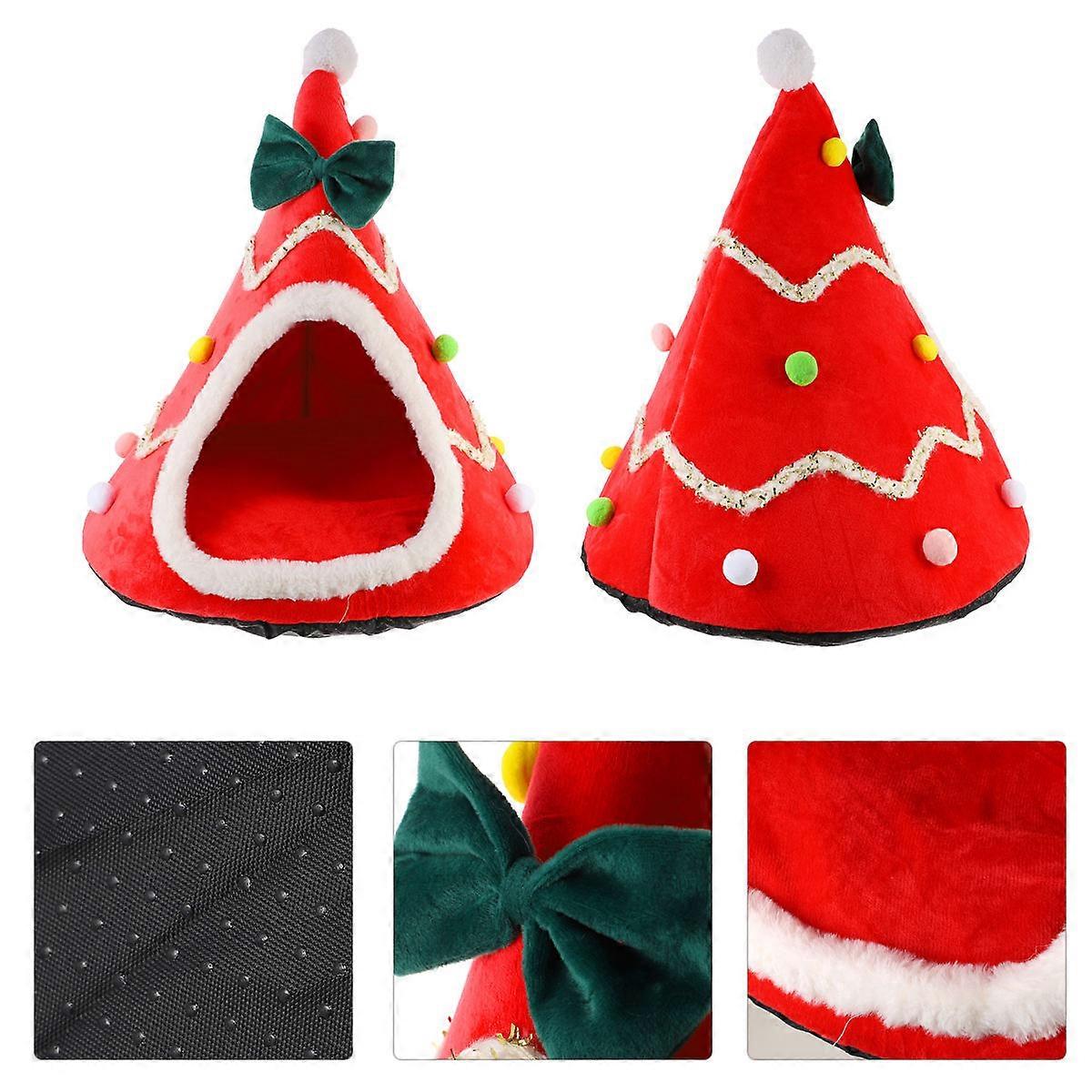 Xmas Pet Bed Cozy Cat House Dog Kennel Winter Occasion Fabric 1Set
