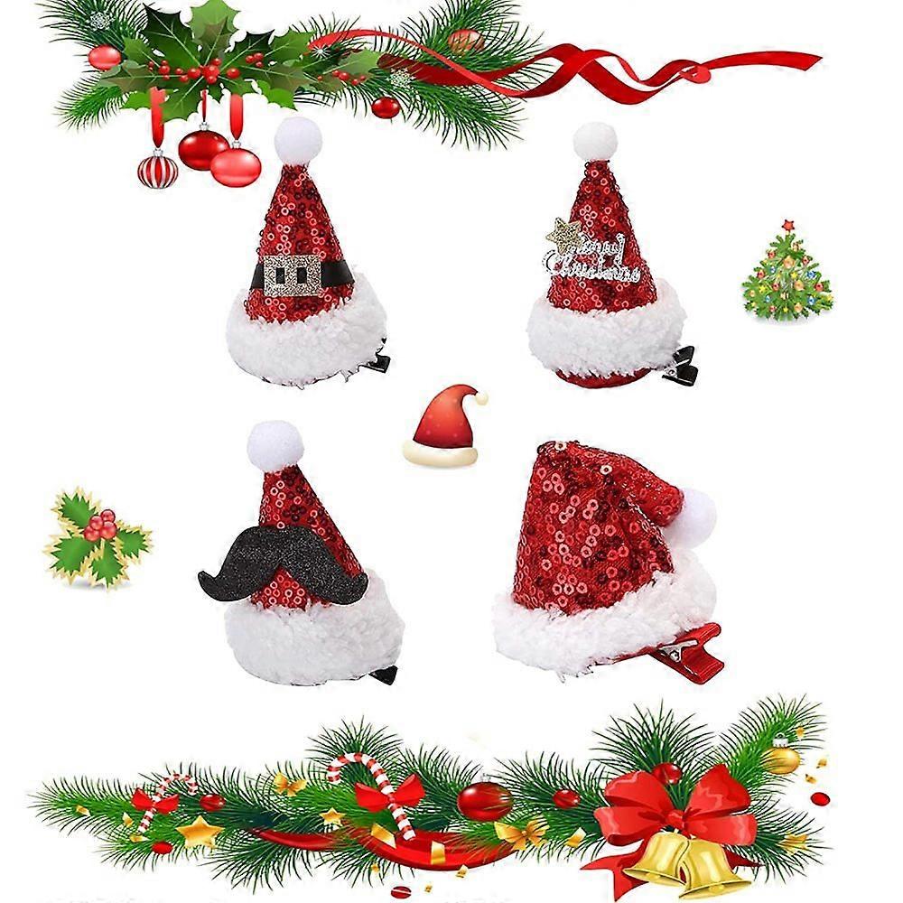 Christmas hairpins, 4pcs novelty Santa hat pattern hairpins, Christmas hairpins, Santa hat hairpins, mini Santa hat hairpins