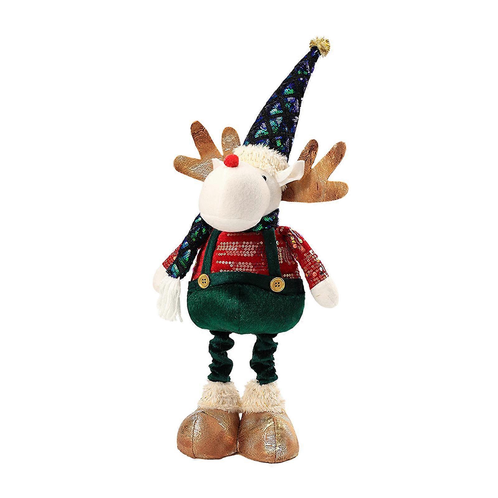 Description: 【Festive Christmas Figure Design】: This classic holiday Christmas reindeer ornament is crafted to embody the spirit of Christmas, adding symbolic charm and seasonal joy to any space 【Adjustable Stretch Leg Feature】: The legs height of the Christmas deer doll is adjustable between 45 cm-60 cm/17.72 inch-23.62 inch, creating dynamic posing options and enhancing playful visual appeal 【Versatile Placement Options】: The Christmas elk figure ornament great for displaying in living rooms, studies, shop window, homes, retail spaces, or offices, etc 【Product Dimensions】: The Christmas deer doll ornament is with dimensions of 30cmx15cmx10cm/11.81inchx5.91inchx3.94inch, great for table top decor 【Ideal Gift】: This decorative Christmas window display elk ornament is also an ideal gift choice for families and friends on birthdays, holidays, festivals, etc Specification: Material: Fiber Cotton Short Plush   Size Chart: 60 cmx22 cmx10 cm/23.62 inchx8.66 inchx3.94 inch Package Includes: 1 Christmas Doll Ornament Note: Please allow slightly errors 1-2cm differences due to manual measurement.