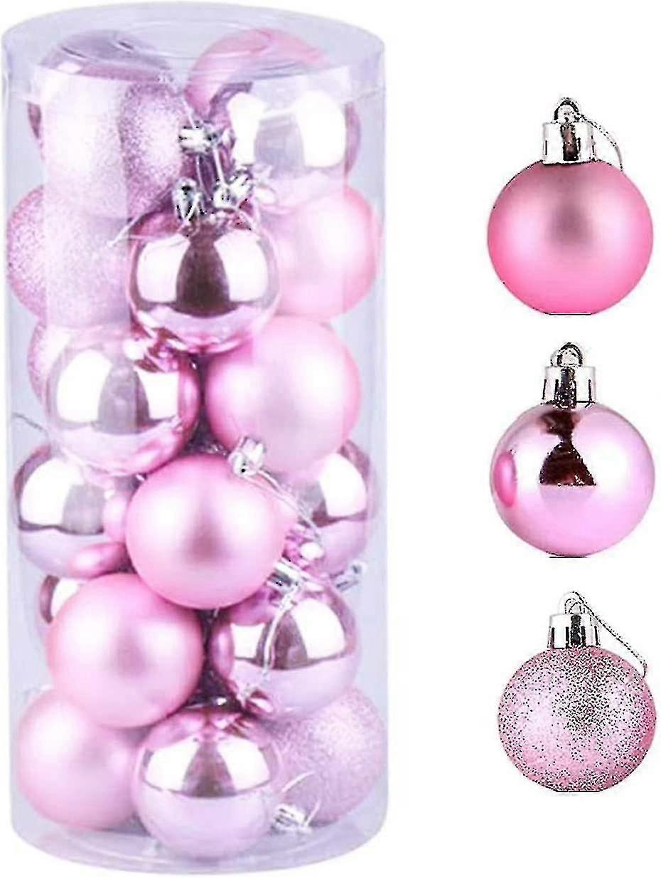 Christmas Baubles, 24 Pieces Pink Christmas Decorations, Matte, Glossy, Glitter Christmas Baubles, For Christmas Tree Decorations