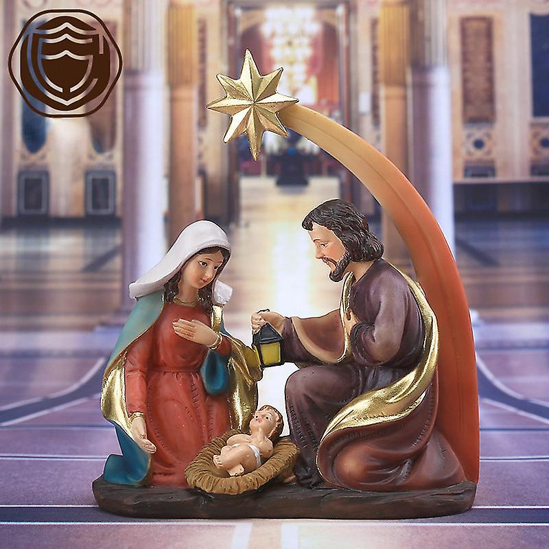 Christmas Home Decoration Holiday Gift Elegant Profile Nativity Set Include Holy Family Resin Decorative Figures Toys Gift