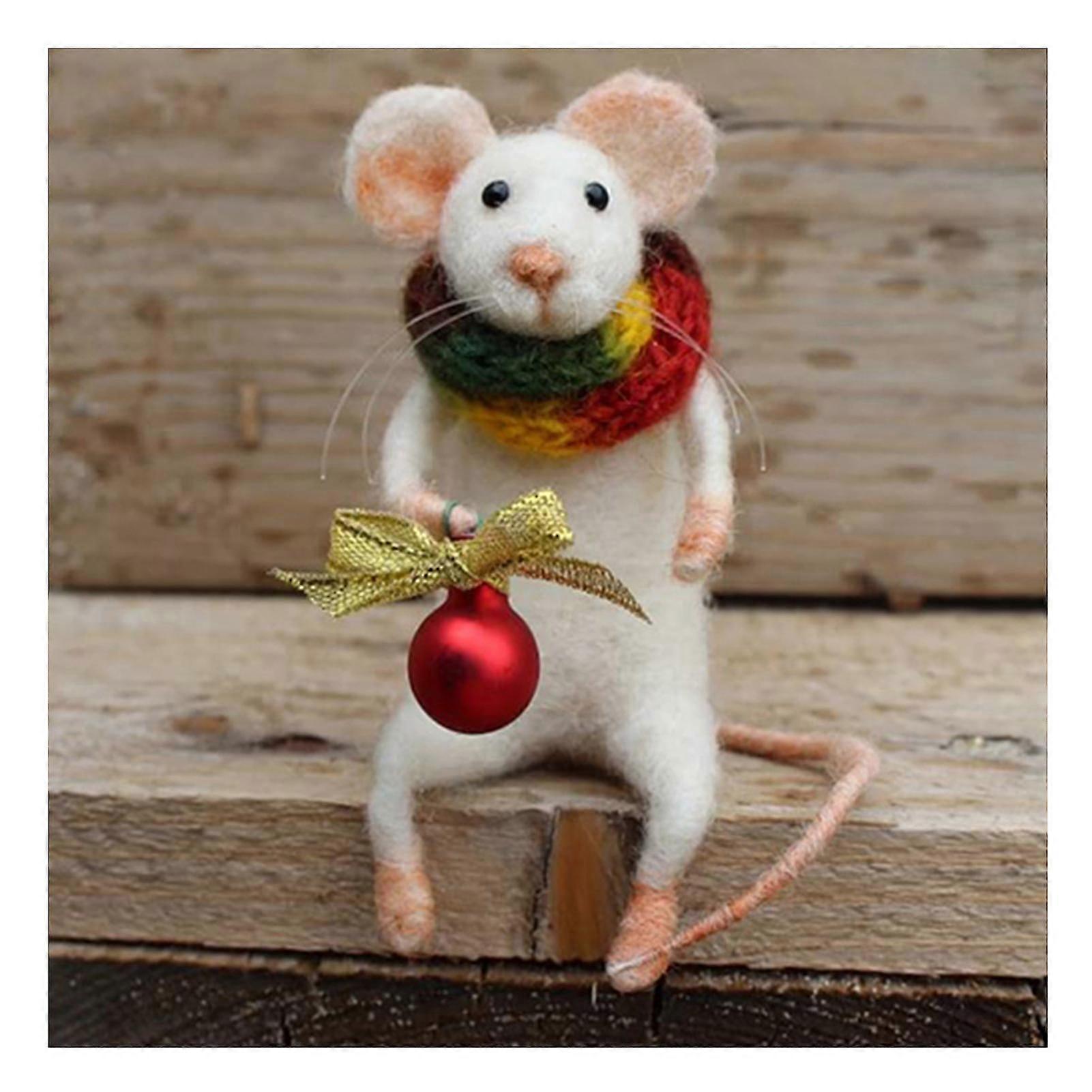 Features: Soft Material: Christmas mouse decoration is made of Felt with handwork handicraft full of Christmas day joy and happiness very lovely Christmas decorations. Delicate Design: The product comes with a red ball and can be applied for Christmas tree window or fireplace to make beautiful decorations giving you a pleasant experience. Wide Usages: Christmas plush good for putting on sofa fireplace car bedroom living room cafe desk dessert house and more. Fashion Gift: Modeling lovely and realistic plush with classical Christmas element Christmas ornaments dolls add the festival atmosphere fashionable and novel good as gift for boys girls and your friends. After-Sale Service: Our product will give you an impression with its efficiency and high quality If you have any concerns please contact us. Specification: Material: Felt Size: 12cm Weight: 20g Notes:Please allow slight tolerances in size due to manual measurement and lighting in photography may result in a difference in color than in real. includes: 1*Ornament "