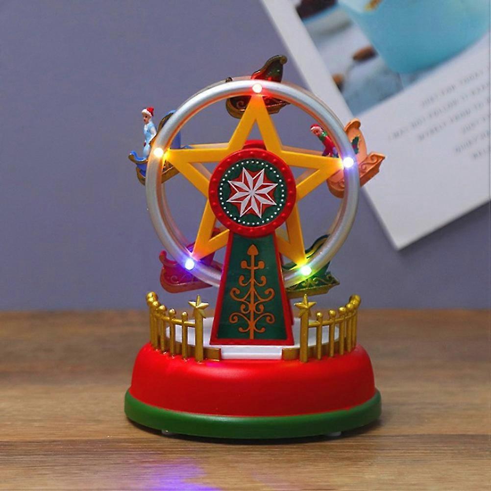 Christmas Mini Music Box Luminous Music Carousel Ferris Wheel Animated Christmas Gift Romantic Desktop Decoration Size: Carousel/Ferris Wheel: 11*11*15cm Material:Plastic Power supply mode: 3 AAA batteries (not included)