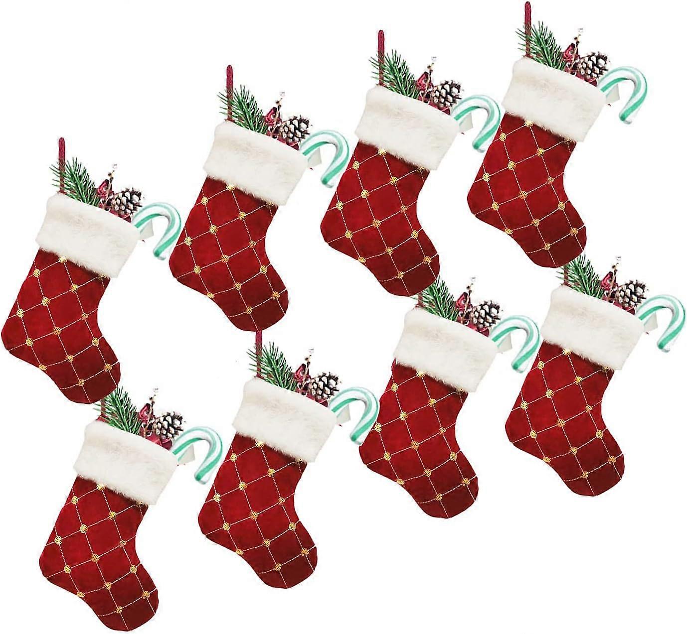 Christmas Mini Stockings 9 inch Glitter Round Dots Sequins Grid Xmas Stocking with Plush Cuff Tableware Holders Gift Card Bags Holders Bulk Treats Bag
