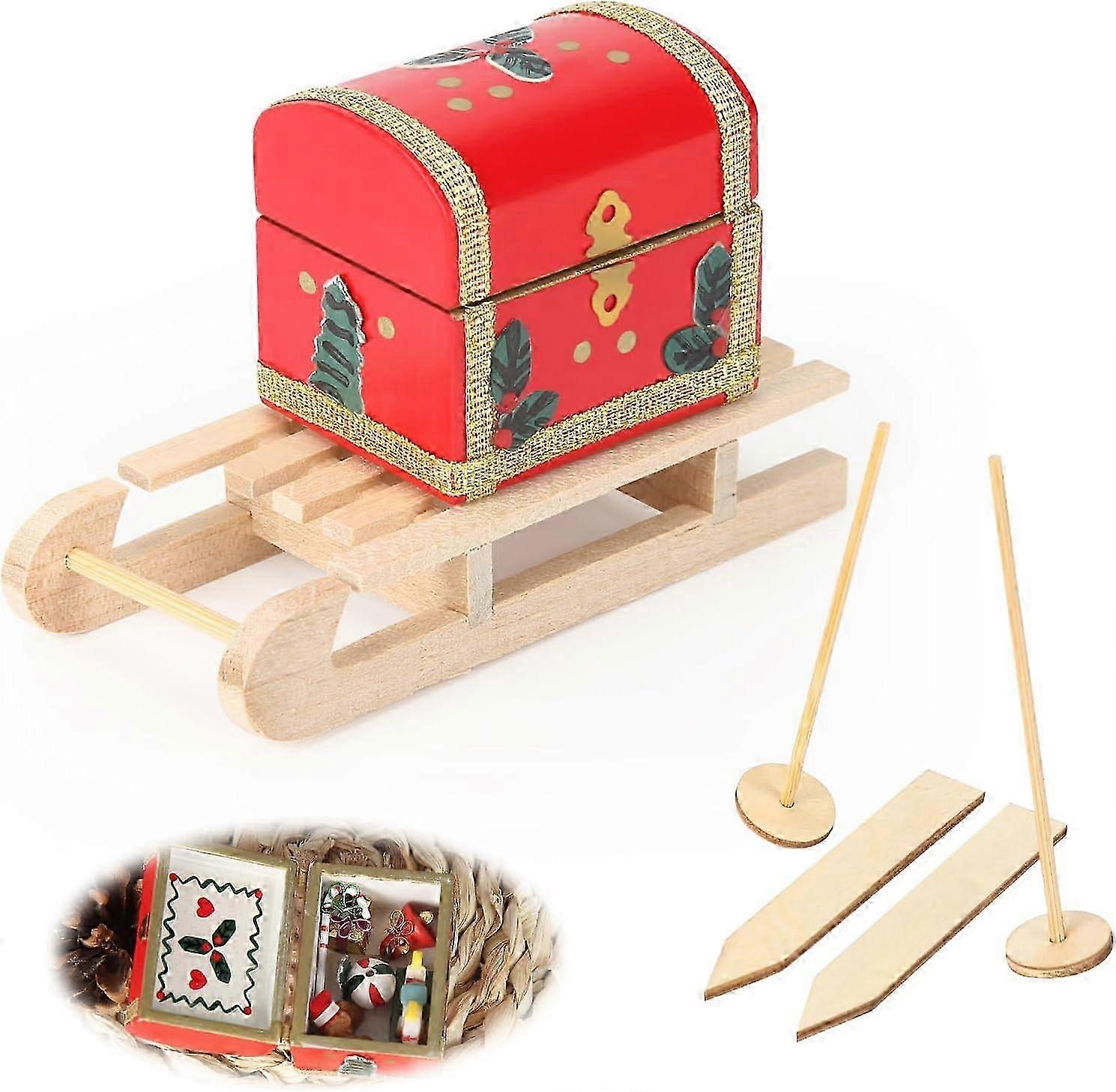 Christmas Miniature Sledge Dollhouse Accessories, Miniature Treasure Chest Christmas Accessories, Snowboard, Christmas Decoration for Outdoor