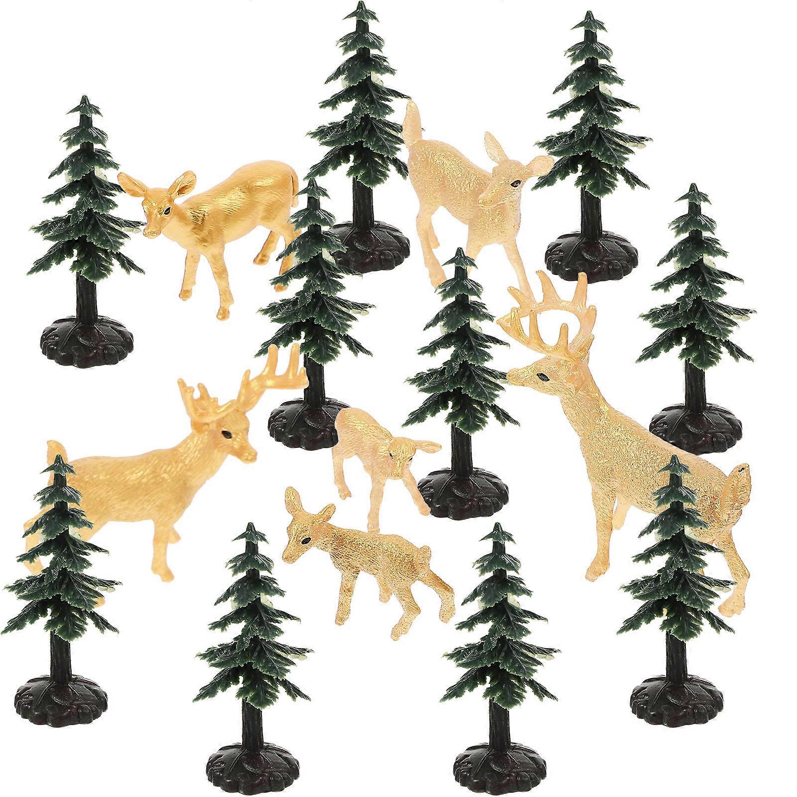 Christmas Miniatures Deer Figure and Tree Decorations for Christmas Party Assorted Color Resin Decorative 16Pcs