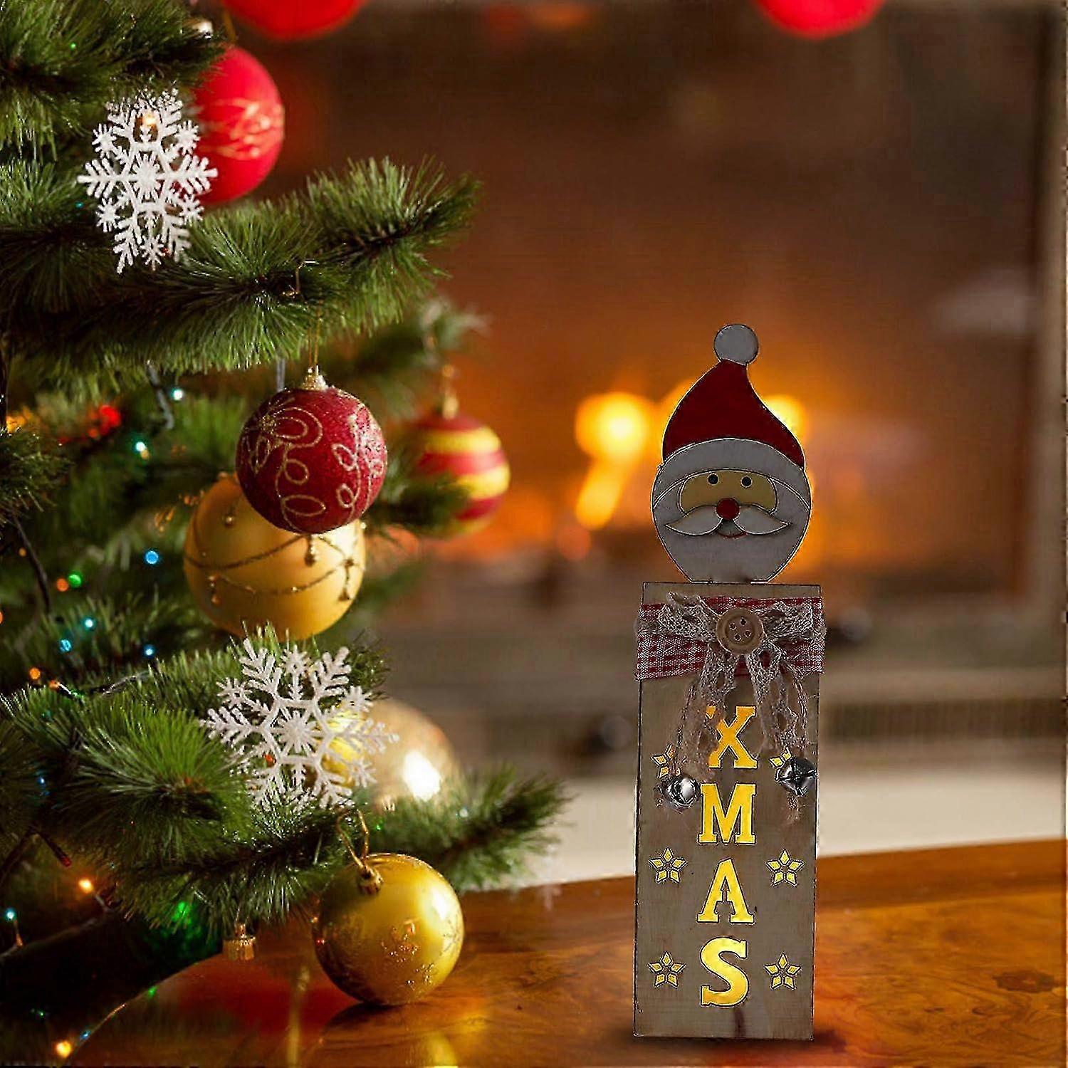 Christmas Light Up Ornaments Xmas Santa Claus Snowman Reindeer Wooden Xmas Nightlight Centerpieces Desk Ornament for Xmas Home Decor-1809