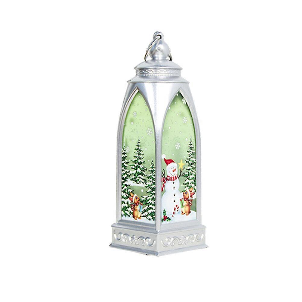 Christmas Lantern Creative Painted Small Wind Light Desktop Ornament Wind Lamp Pendant Decor Christmas Decor Supplies (Silver Snowman Style)