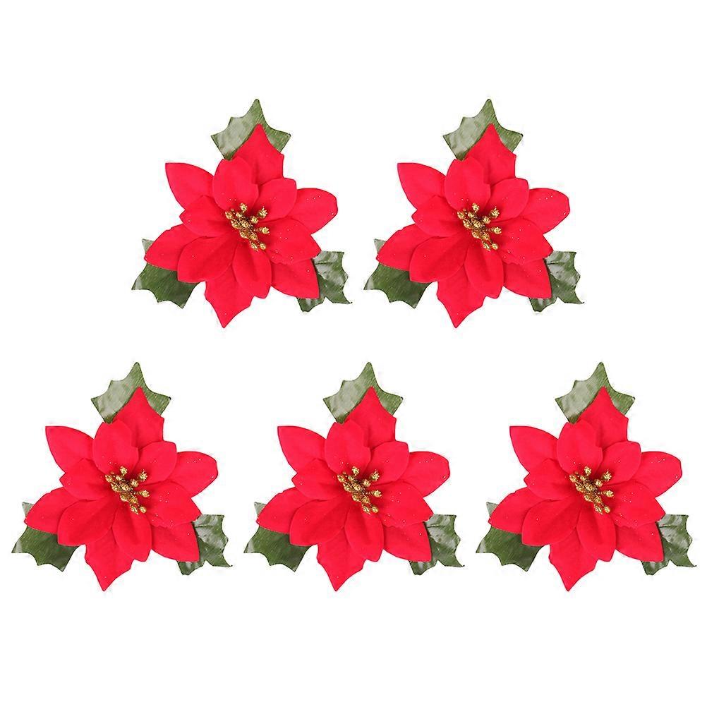 Christmas Wreath Ornaments Plastic Red Flower Garland Decoration Props For Windows Doors Walls Fans 15x15cm 5Pcs