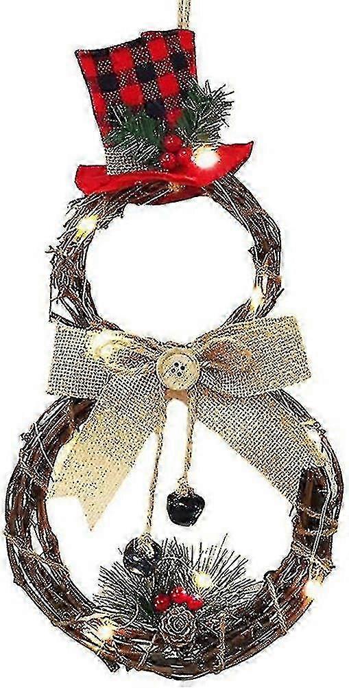 Christmas Wreath Door Decoration - Rustic Rattan With Led Lights And Burlap, Ideal For Decorating Doors, Walls, Or Windows