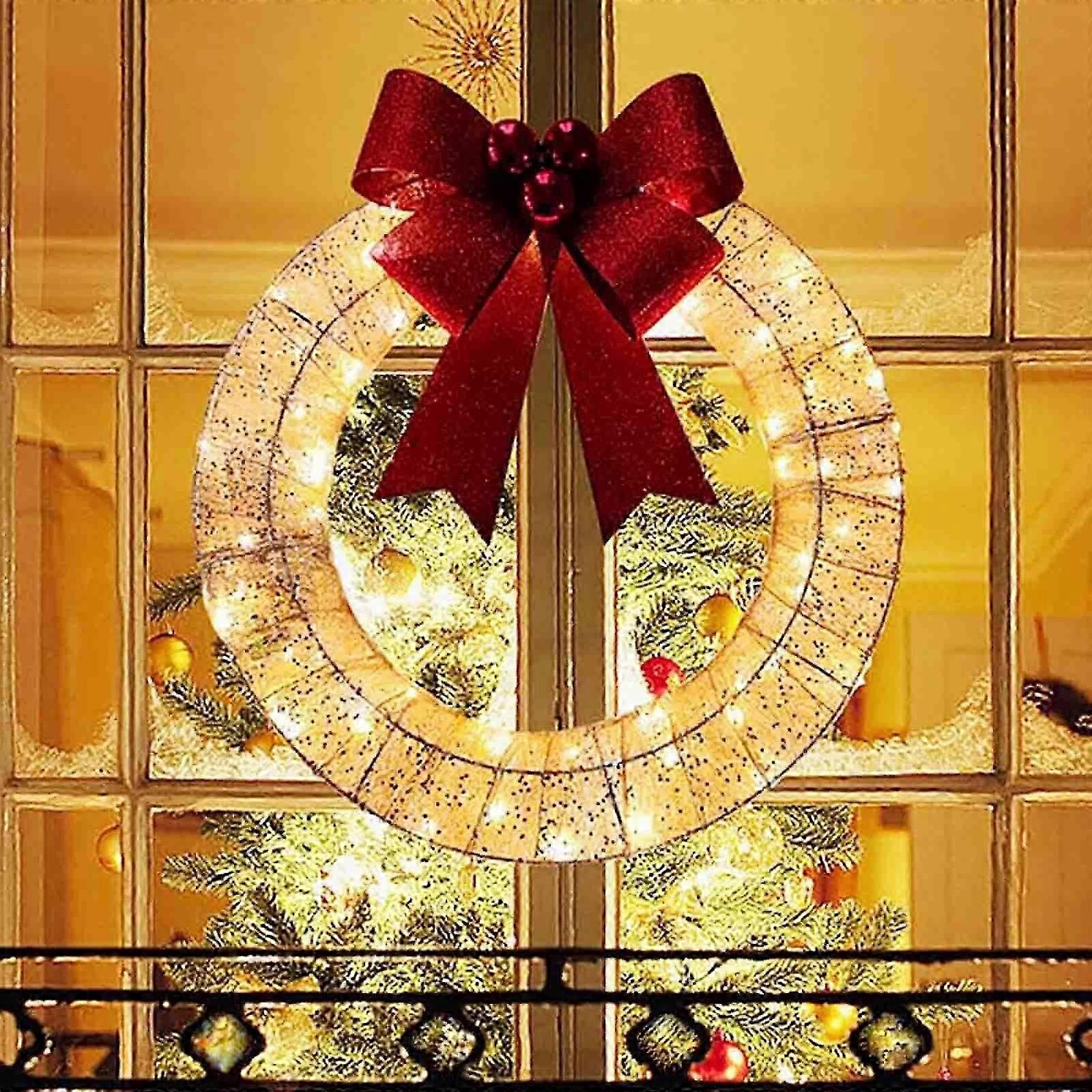 Christmas Wreath Metal Wreath LED Warm Big Bow Christmas Decorations Door Hanging Decorations