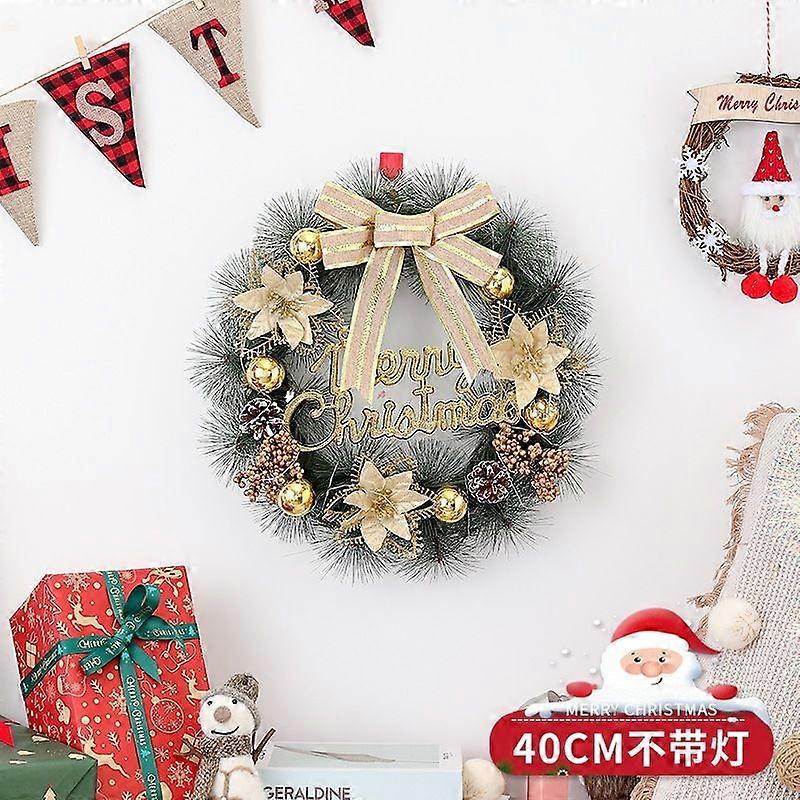 Christmas Wreath 40/50/60cm With Lights Decorations Door Hanging Gift For Holiday Scene Decoration Three Flower Golden Bow
