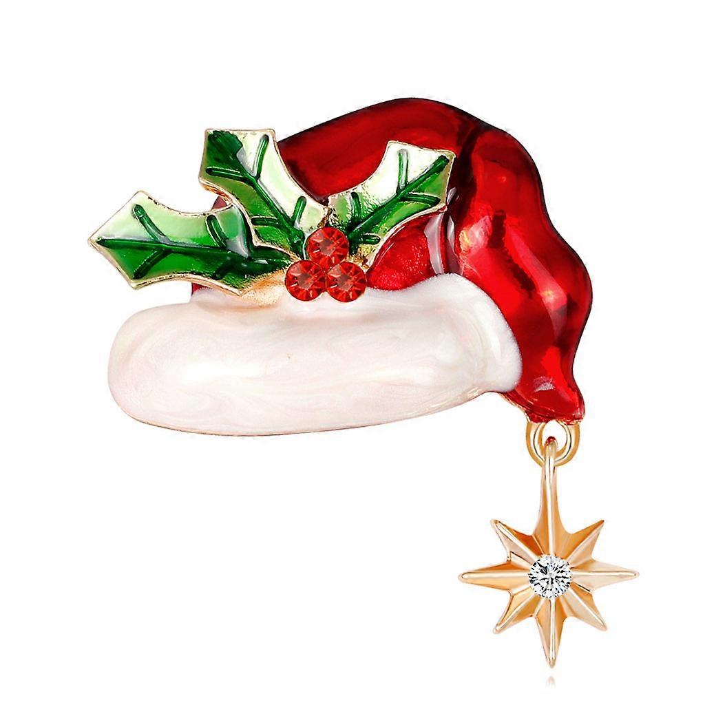 Christmas Red Hat Brooch Retro Cute Santa Claus Hat Brooch Pins Women Men Party Banquet Corsage Jewelry Gift