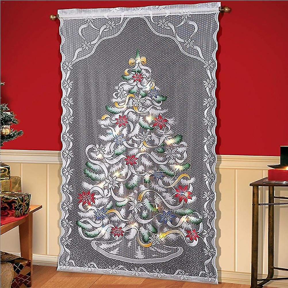 Christmas Lace Curtains LED Light Christmas Tree Half Blackout Curtains Living Room Bedroom Home Decor