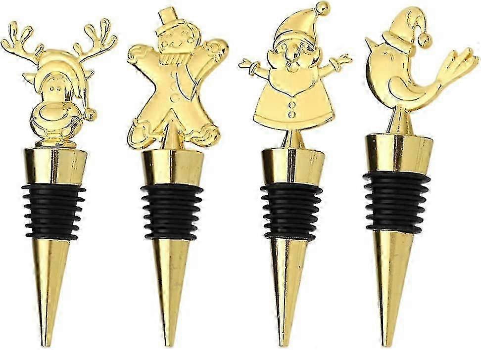 Christmas Wine Stoppers 4Pcs - Santa Snowman Reindeer Gingerbread